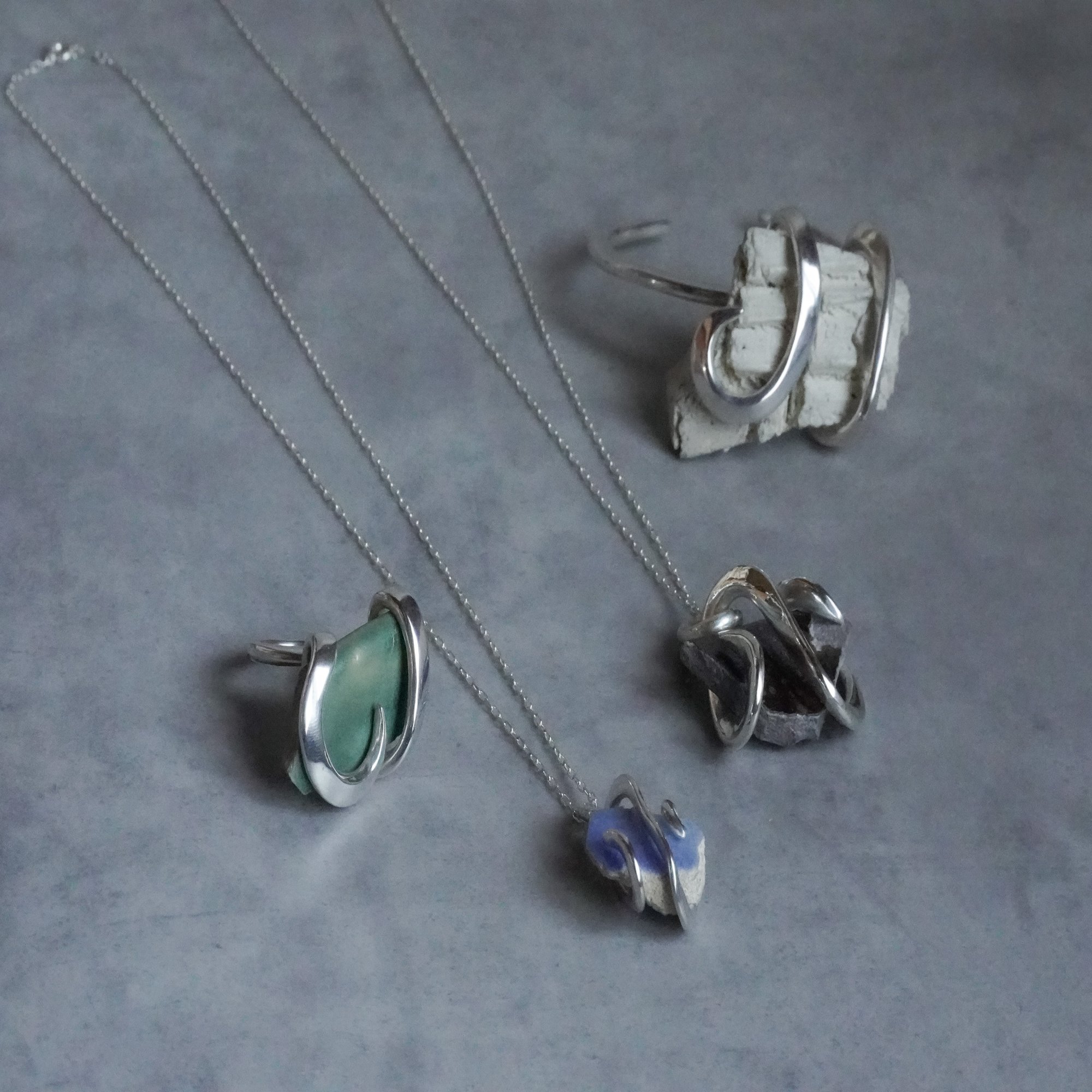 金属部分の素材はsilver999のリサイクルシルバー。 (ネックレスのチェーンのみsilver925)
