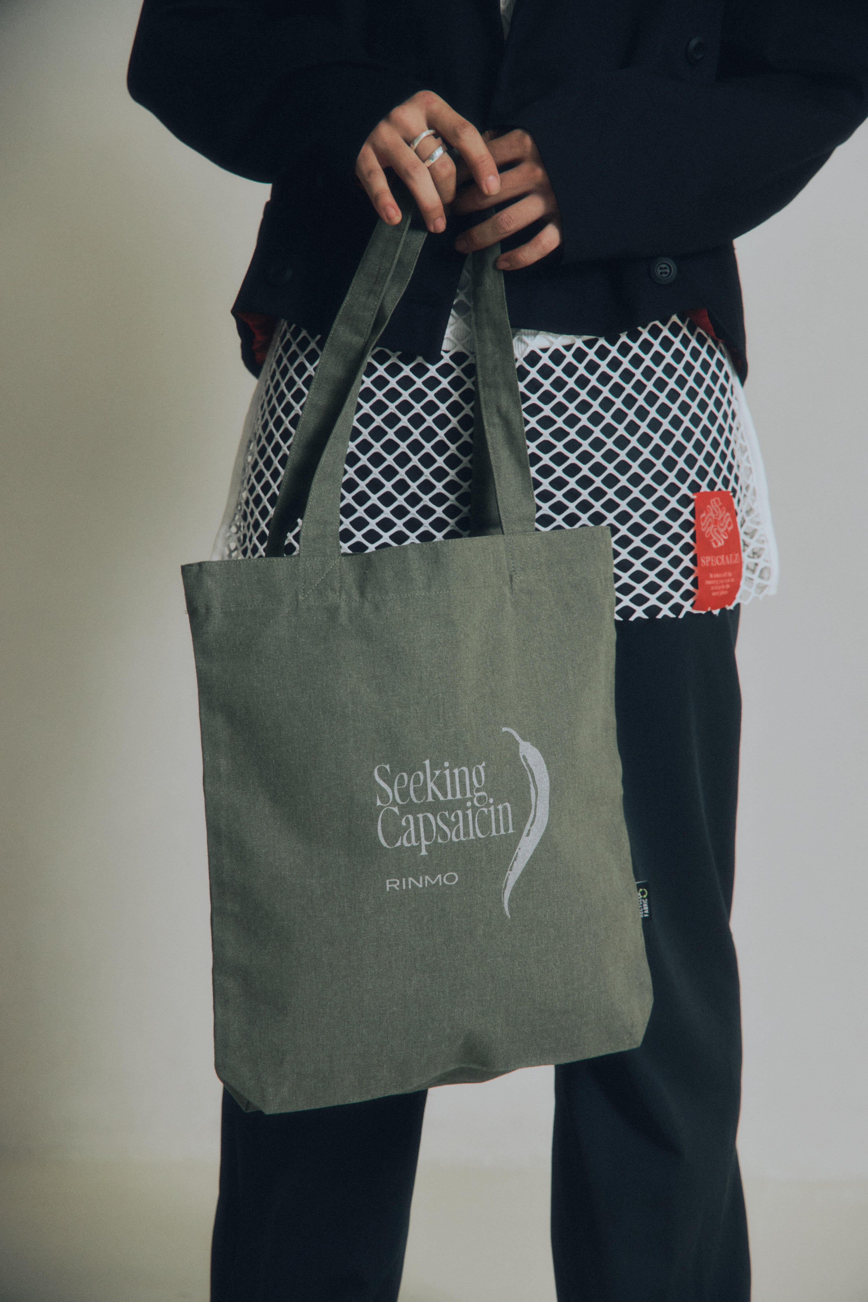 トートバッグに溢れる世界ですが、なかなか完璧なサイズ感や色、厚みのものに出会えることがなかったため、唐辛子をイメージしたジュエリーコレクションに合わせて制作しました。