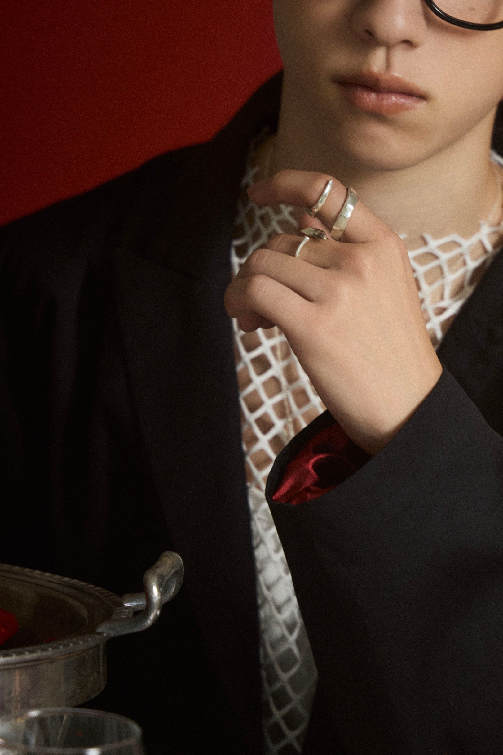 銀の厚みや角度を微調整し、しなやかな形状に近づけていく——まるで彫刻をするような、アナログで緻密な工程を重ね、一つ一つ丁寧に制作をしています。