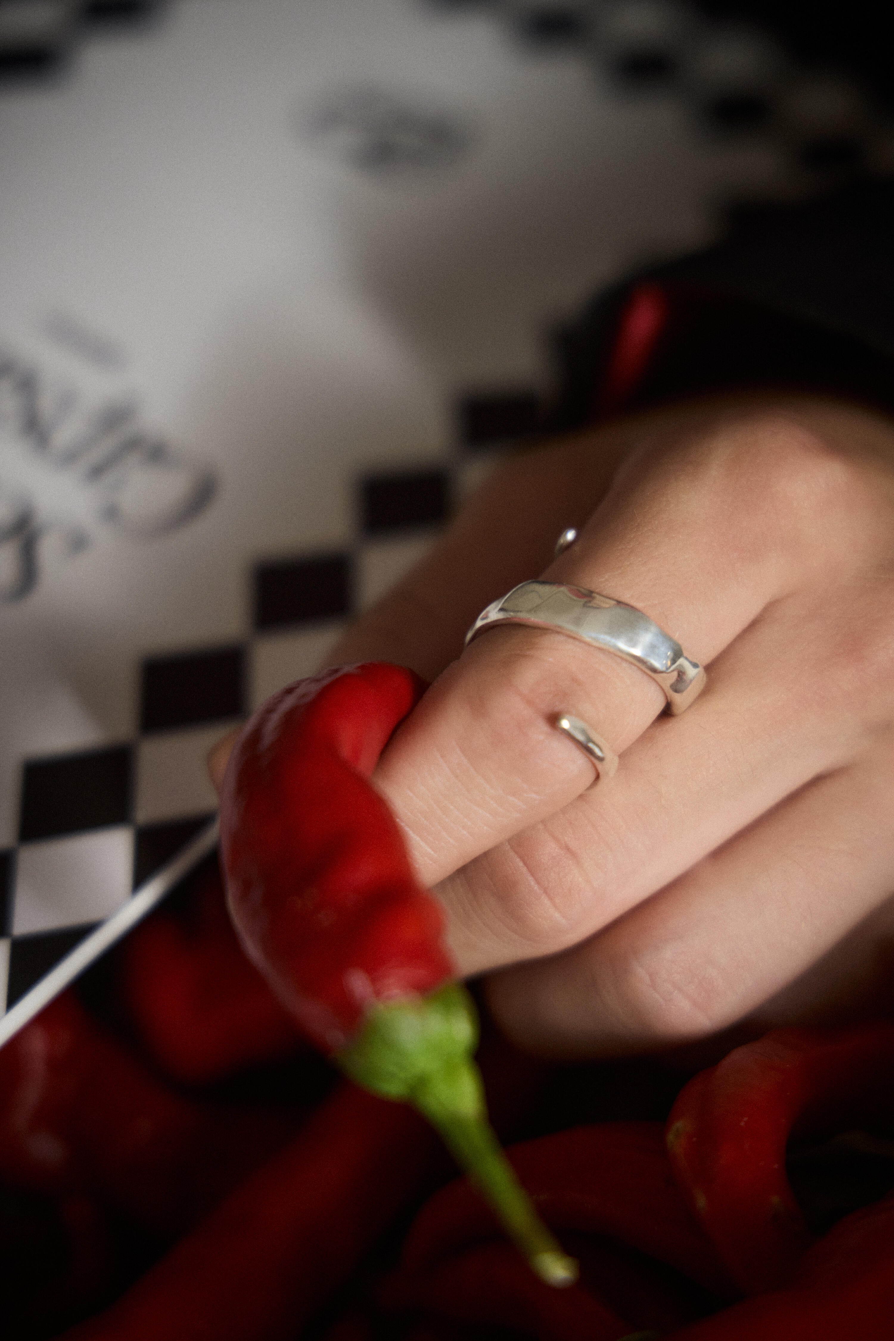 唐辛子の熱を帯びたような力強さと生命力。その小さな果実の中に秘められた燃えるような生命を、対極とも呼べる冷たく無機質な素材である純銀で表現しました。