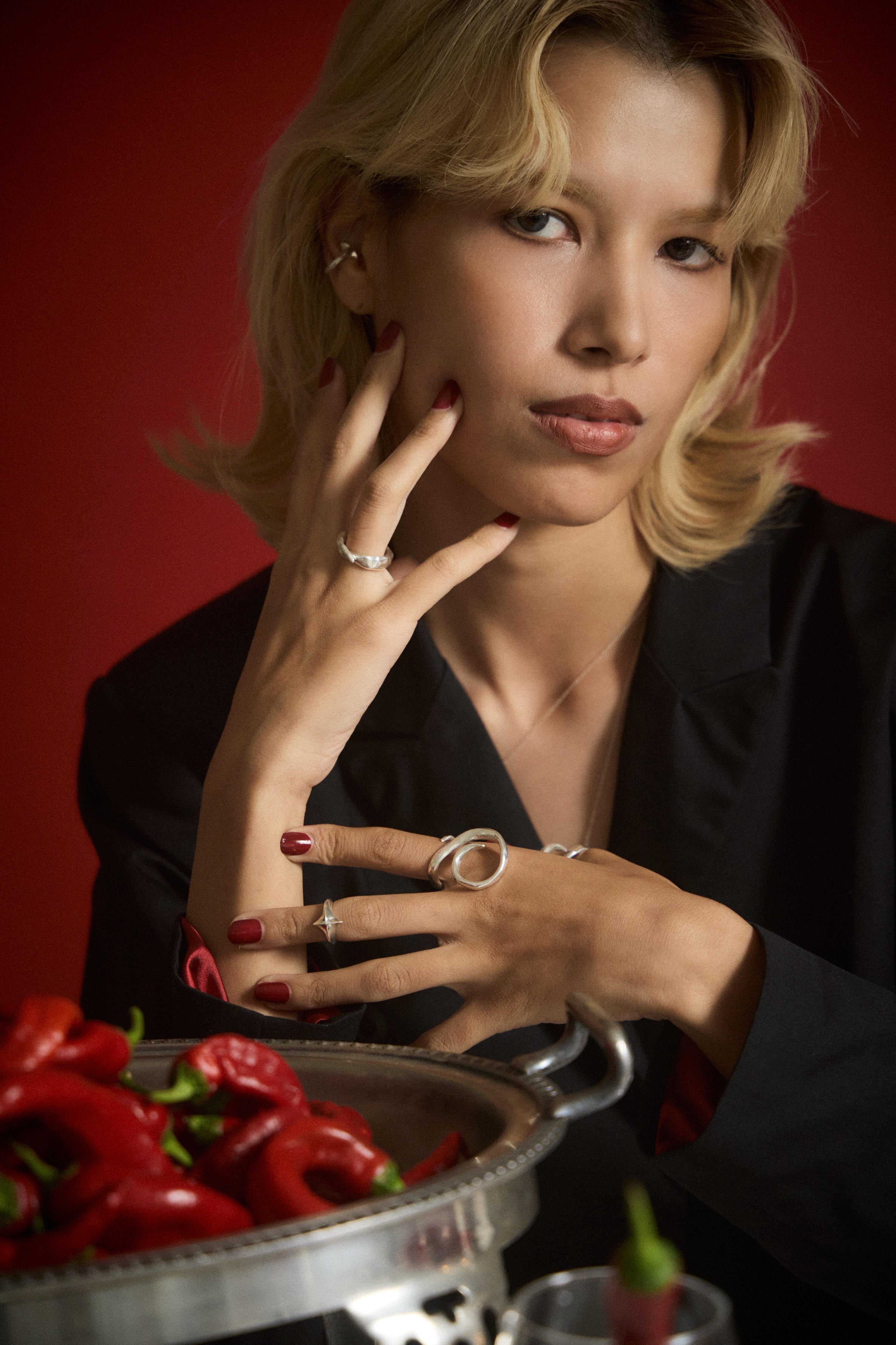 辛味成分カプサイシンを生み出す、果実内部の「胎座」に着想を得ています。小さな果実の中に熱を宿し、エネルギーを巡らせる“核”のような存在。その力強さを、造形として閉じ込めました。